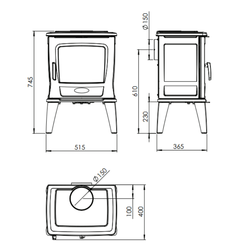 Sortie de fumées : 150 mm, par l’arrière ou le dessus