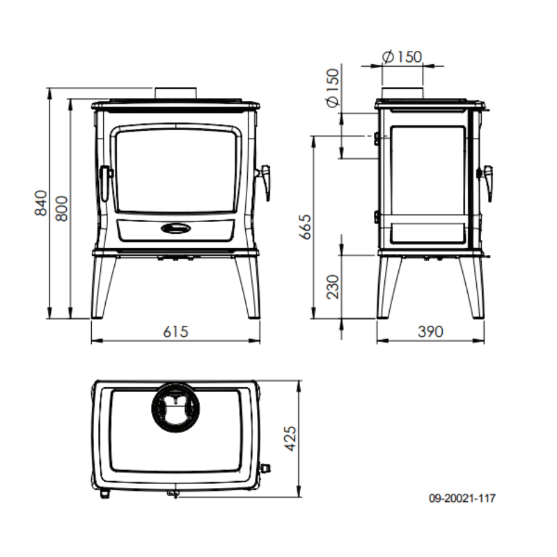 Sortie de fumées : 150 mm, par l’arrière ou le dessus